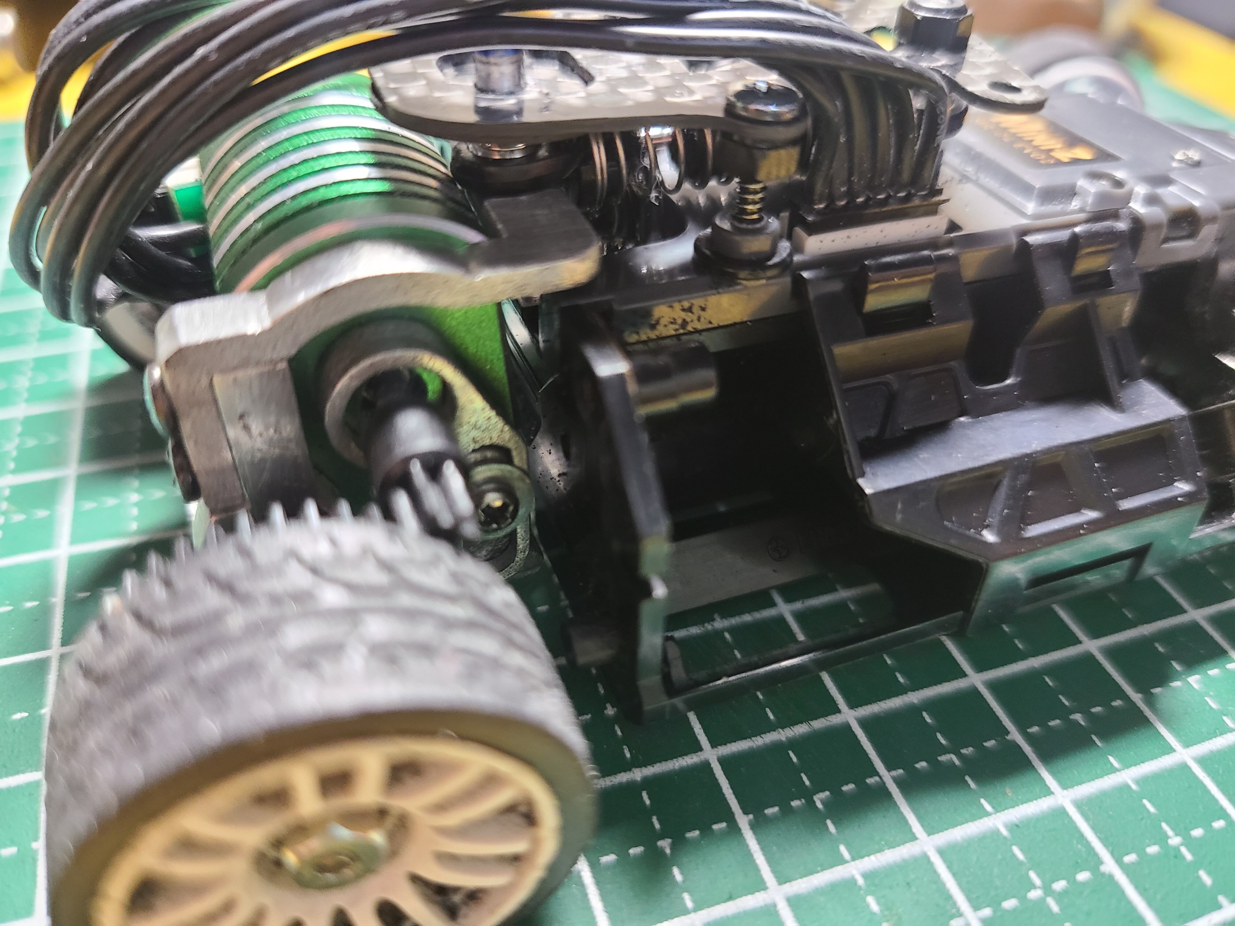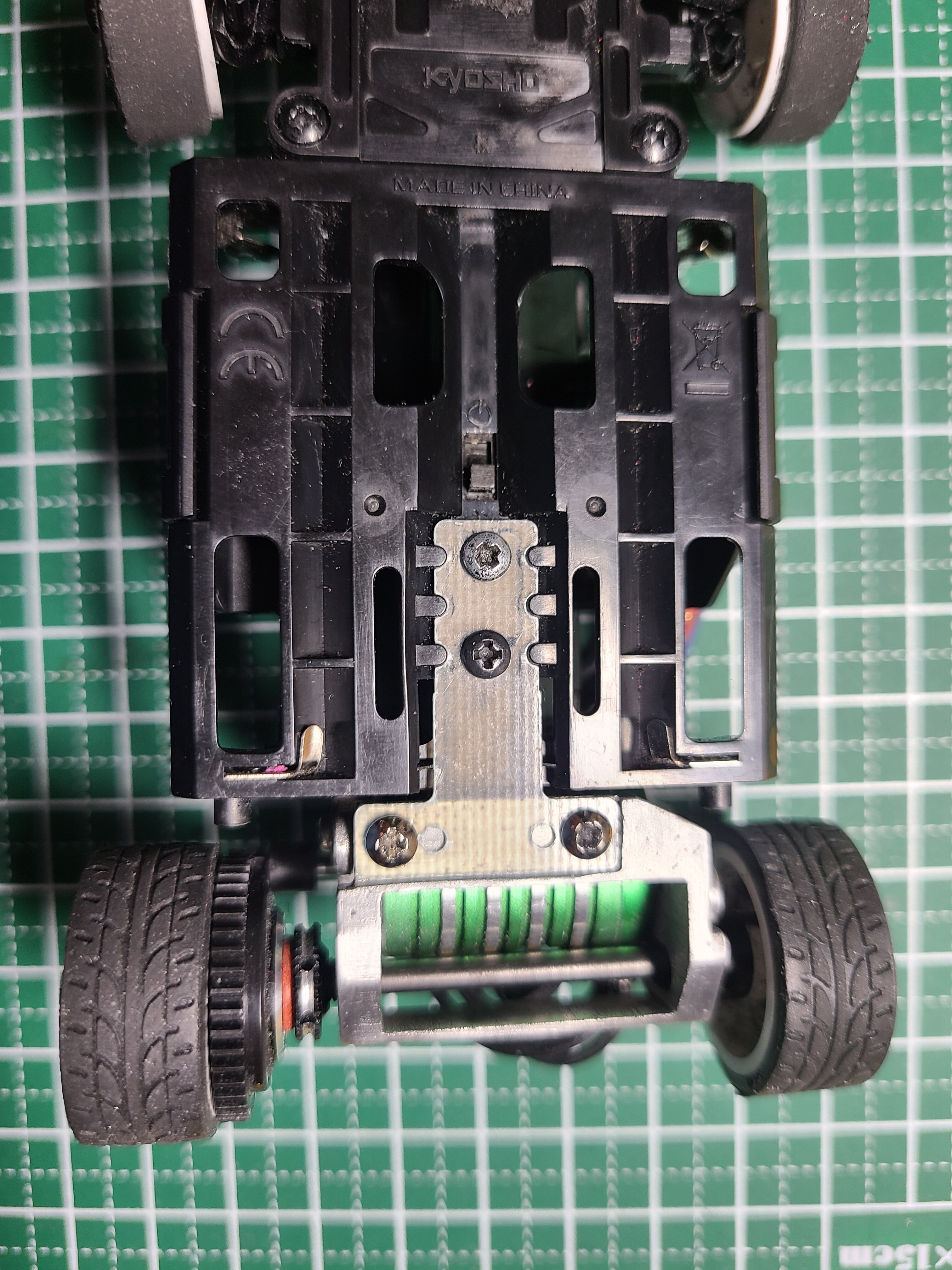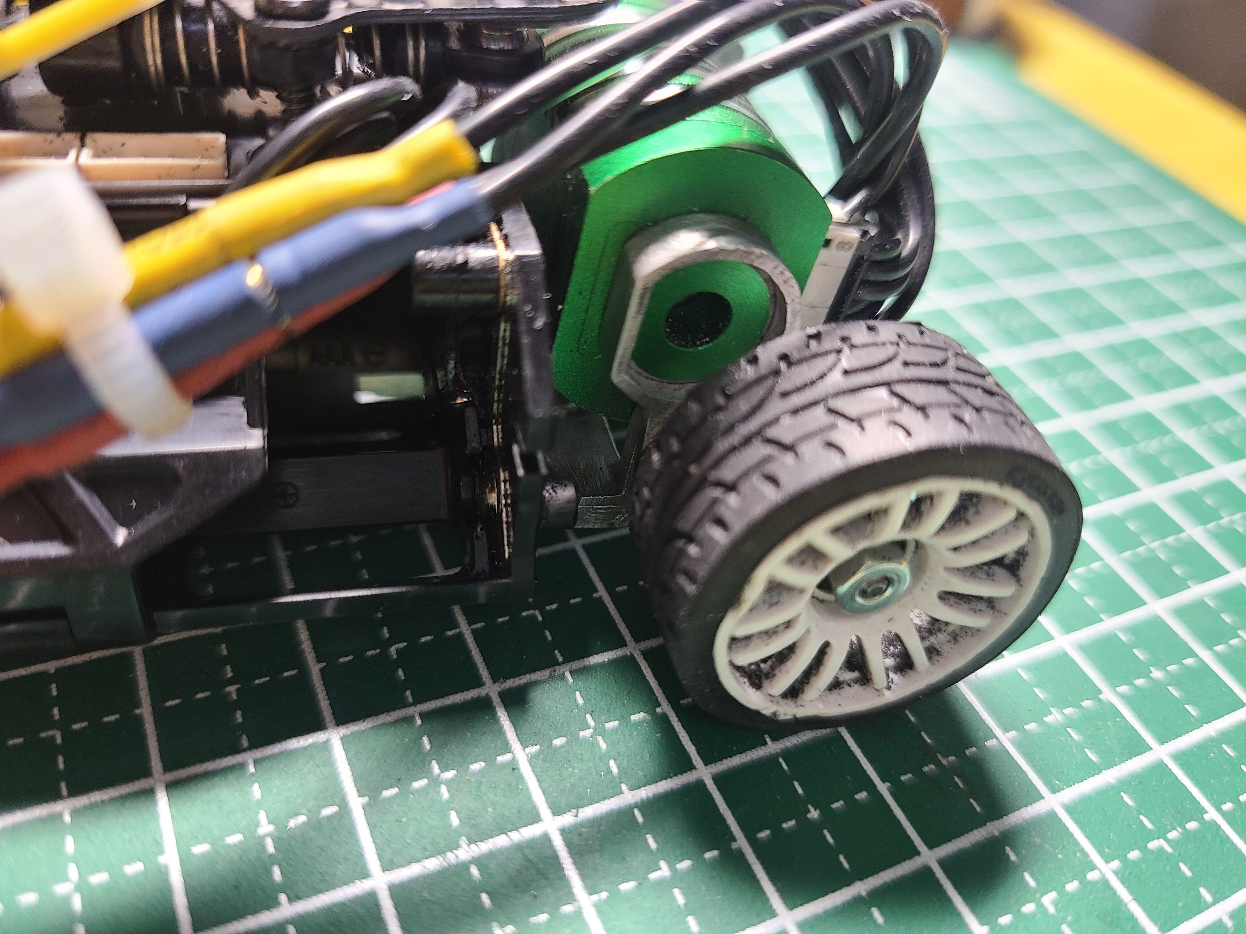 ・ピッチング方向のストロークを稼ぐため、ホイールベースは87㎜として設計しています。
