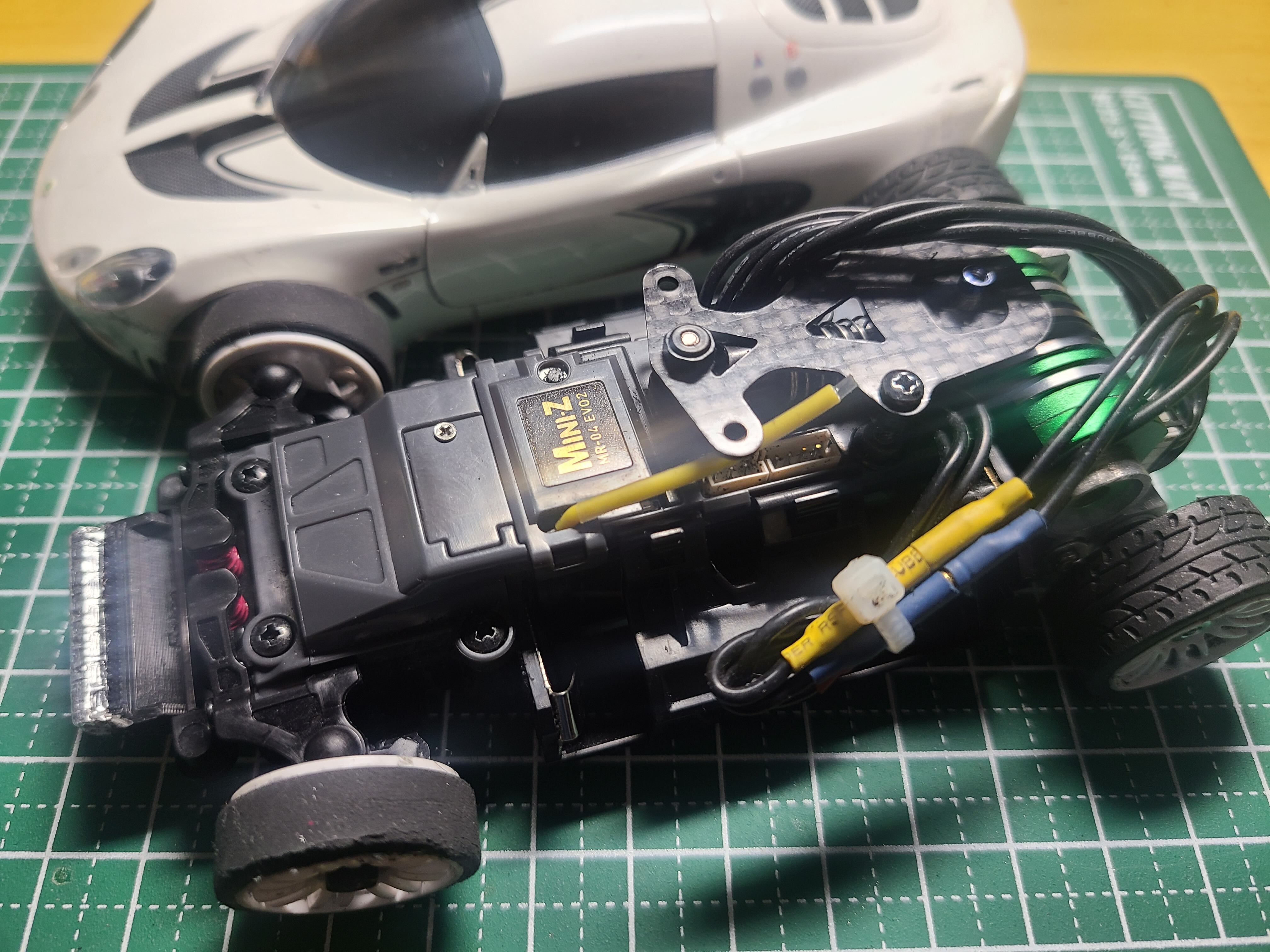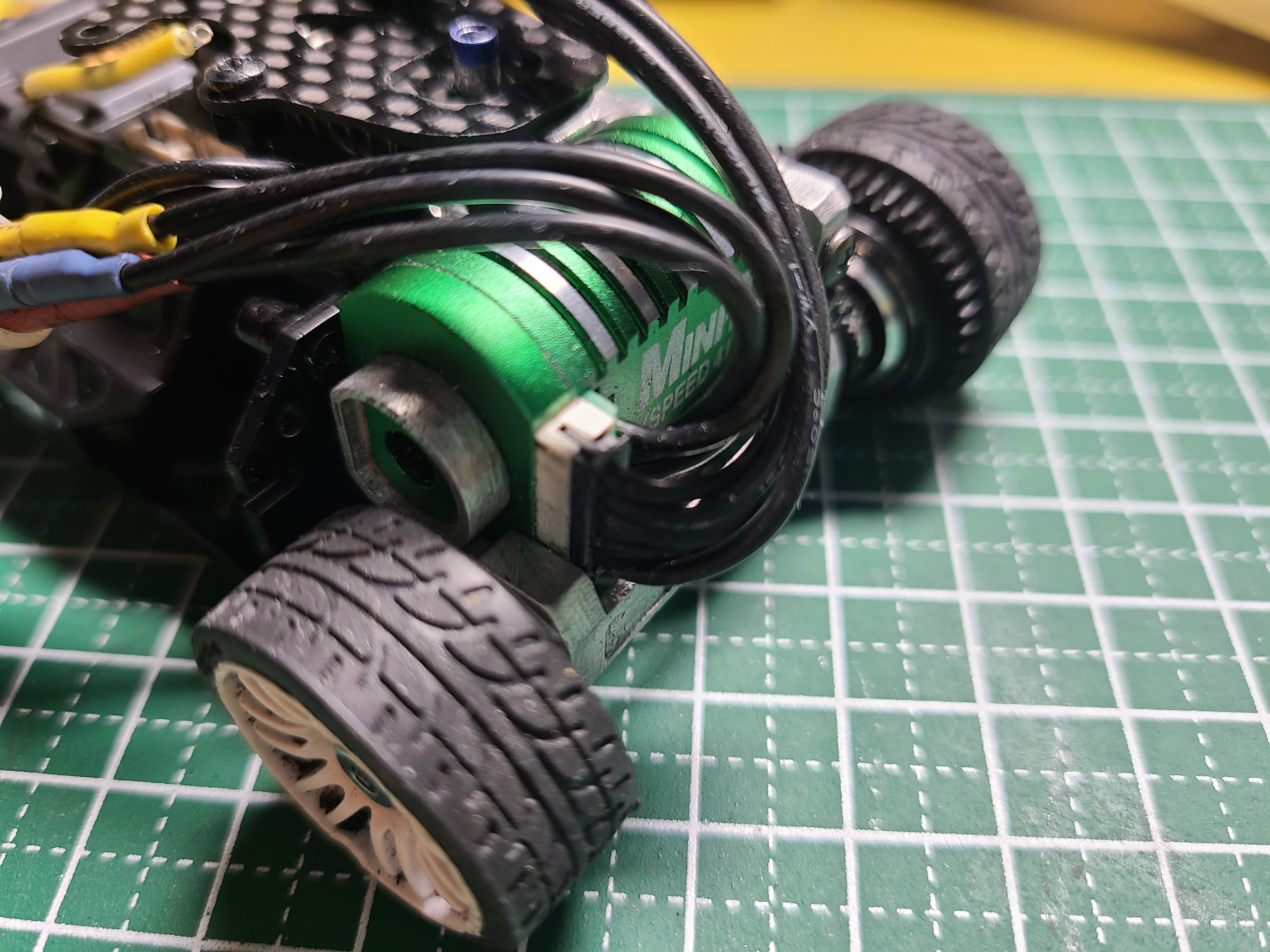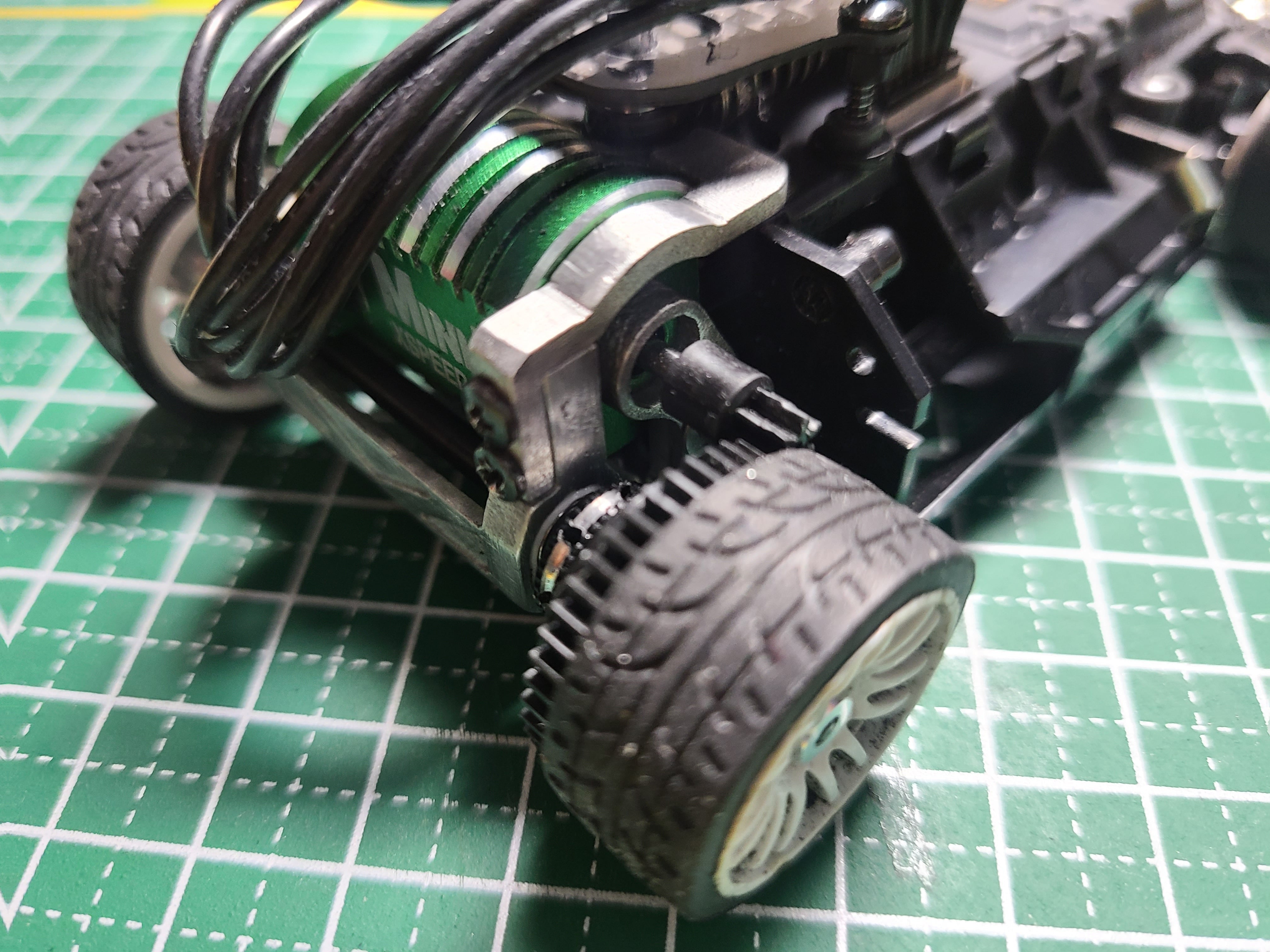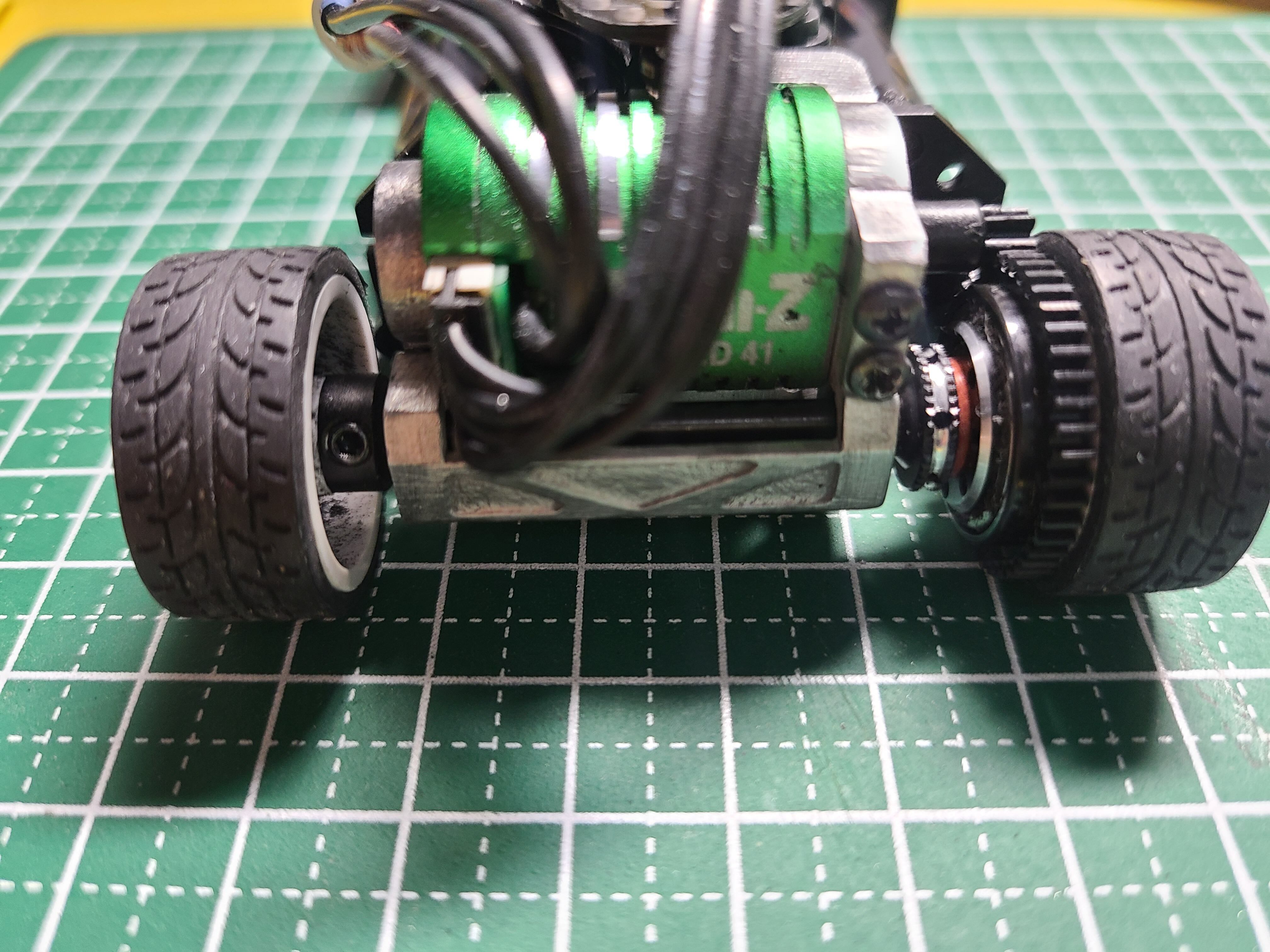 ・ピッチング方向のストロークを稼ぐため、ホイールベースは87㎜として設計しています。